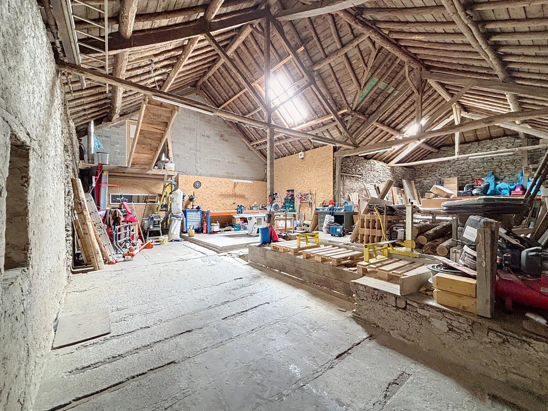 La propriété dispose en outre d’un grand garage de 55 m², d’une grange de 120 m² avec porte électrique, ainsi que de plusieurs annexes totalisant environ 130 m², offrant de nombreuses possibilités d’aménagement.