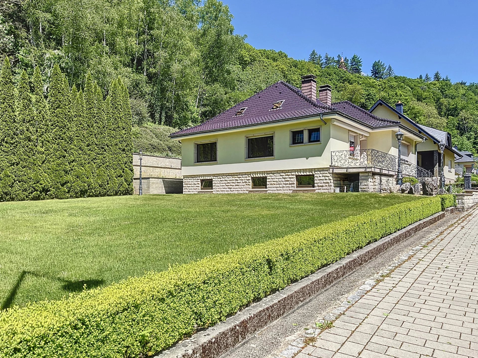Immo Weiss a le plaisir de vous présenter cette superbe maison individuelle à vendre, idéalement située au cœur du charmant village de Clervaux, dans un environnement paisible et verdoyant.