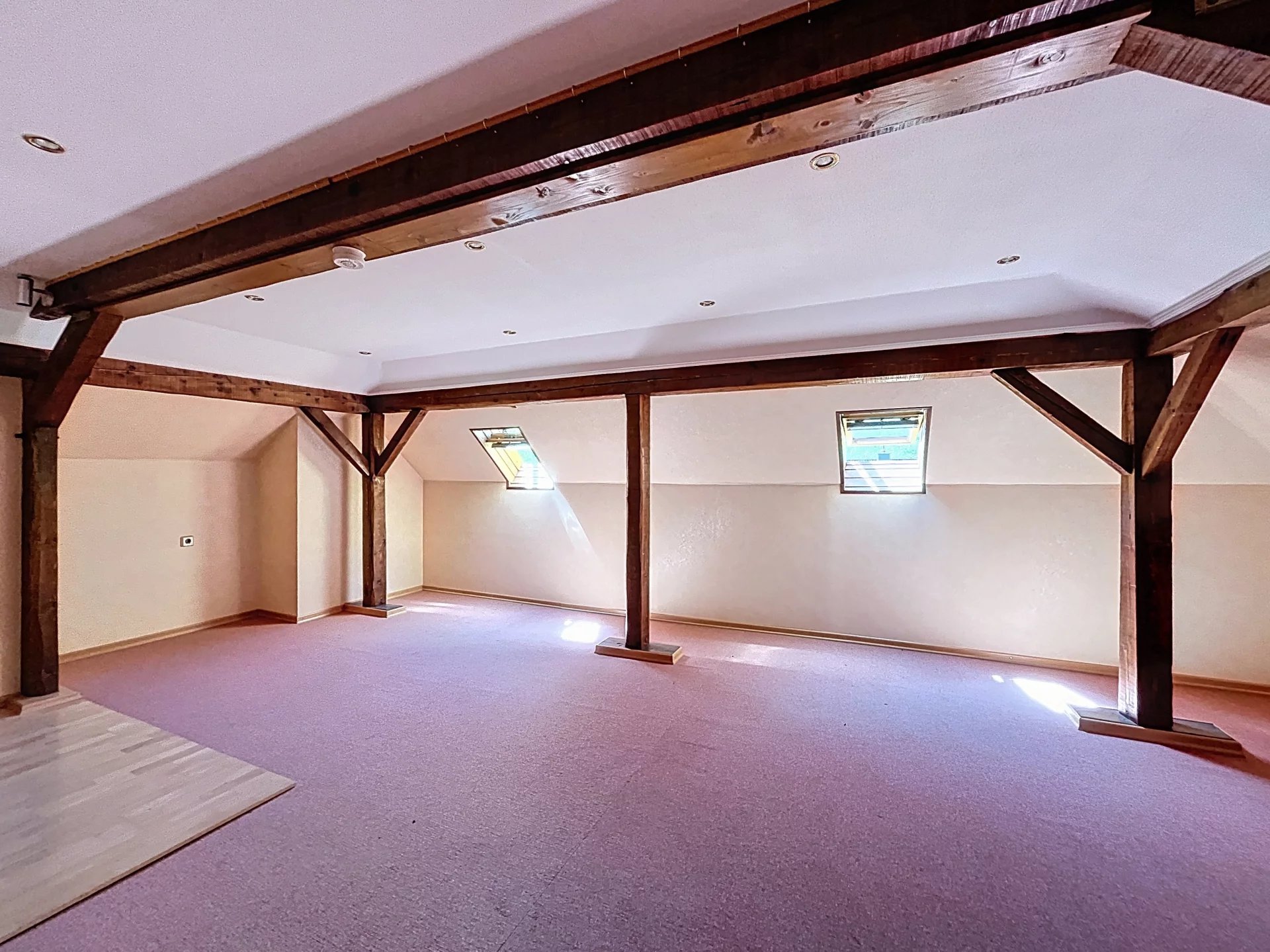 À l’étage, deux chambres mansardées de 10 m² et 30 m² offrent des espaces supplémentaires pouvant convenir à des enfants, des invités ou pour un espace de télétravail.