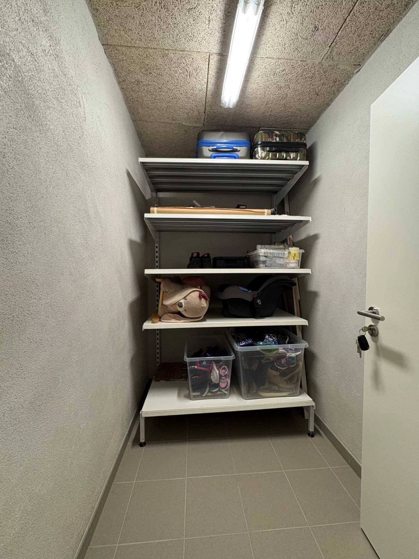En outre, l’appartement dispose d’une cave, d’un emplacement de parking intérieur et d’une place de parking extérieure.